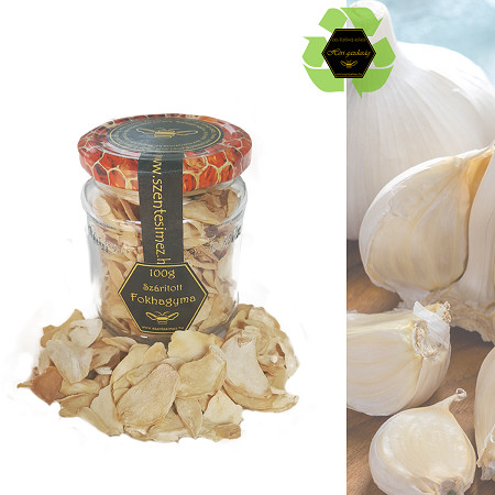 Környezettudatos gazdaságunk terméke. Saját termesztésű fokhagymából, kézműves darabolással, szárítással, válogatással.