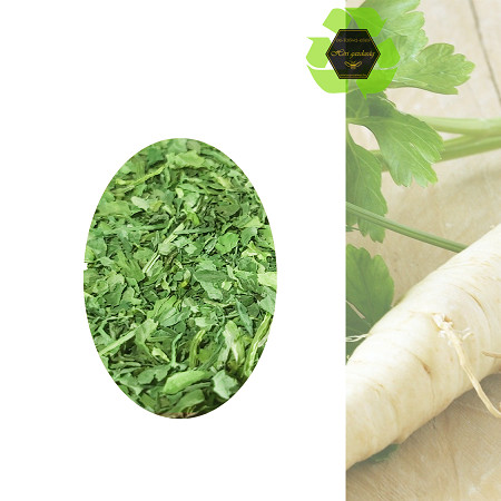 Környezettudatos gazdaságunk terméke. Saját termesztésű petrezselyemből, kézműves darabolással, szárítással, válogatással.
