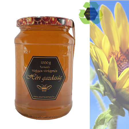 Környezettudatos gazdaságunk terméke.Vegyes virágméz minden olyan méz, ami több virágfajta mézét tartalmazza. Így a növény, amiről gyűjtik és maga a méz is nagyon változatos lehet. Jelen esetben késő nyári, aföldi virágmézet (napraforgót is) tartalmaz az üveg.