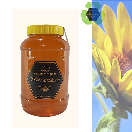 Környezettudatos gazdaságunk terméke.Vegyes virágméz minden olyan méz, ami több virágfajta mézét tartalmazza. Így a növény, amiről gyűjtik és maga a méz is nagyon változatos lehet. Jelen esetben késő nyári, aföldi virágmézet (napraforgót is) tartalmaz az üveg.