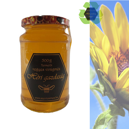 Környezettudatos gazdaságunk terméke. Vegyes virágméz minden olyan méz, ami több virágfajta mézét tartalmazza. Így a növény, amiről gyűjtik és maga a méz is nagyon változatos lehet. Jelen esetben késő nyári, aföldi virágmézet (napraforgót is) tartalmaz az üveg.